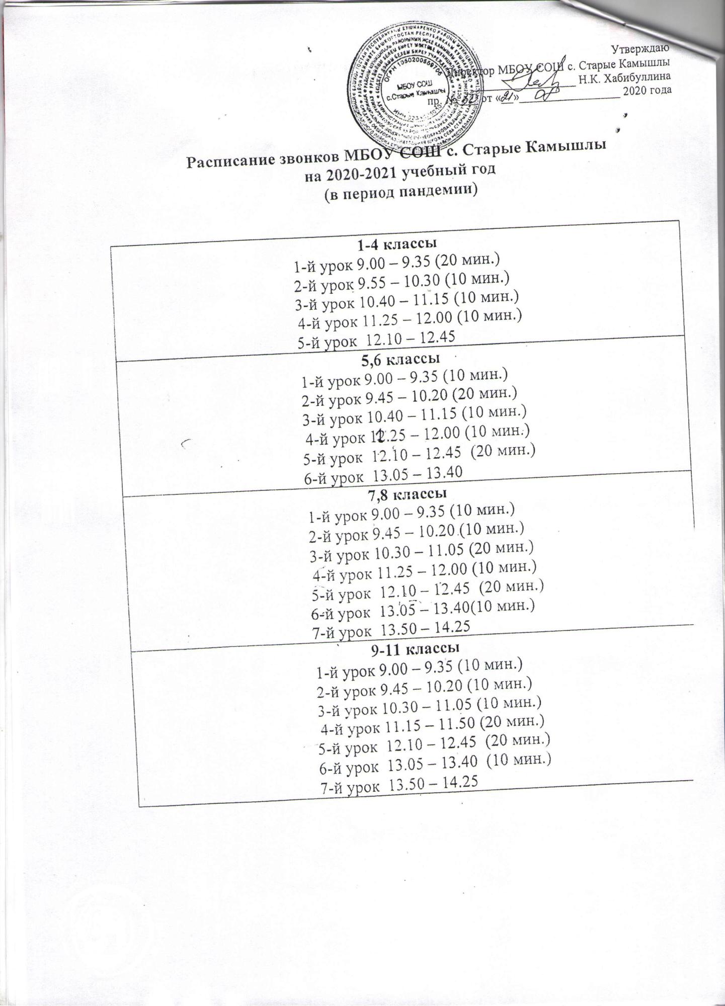 Расписание звонков в период пандемии
